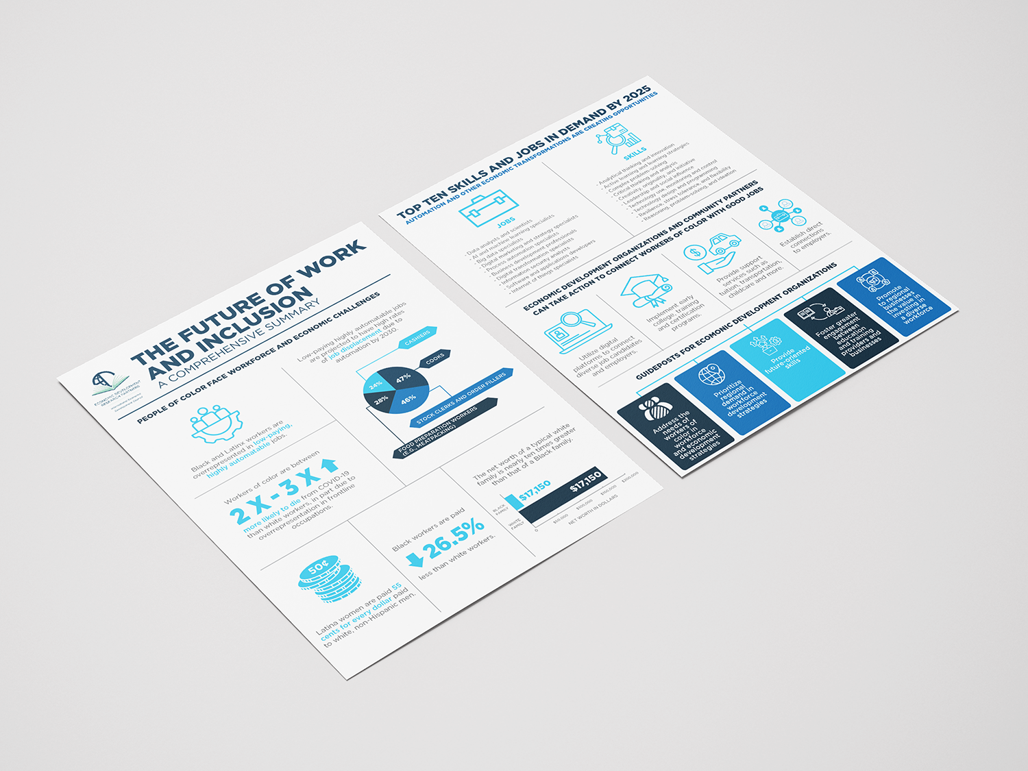 The International Economic Development Council (IEDC) required a new template for their Economic Development Research Partners report. The template needed to follow IEDC’s style guide and incorporate quotes, charts, and infographics.